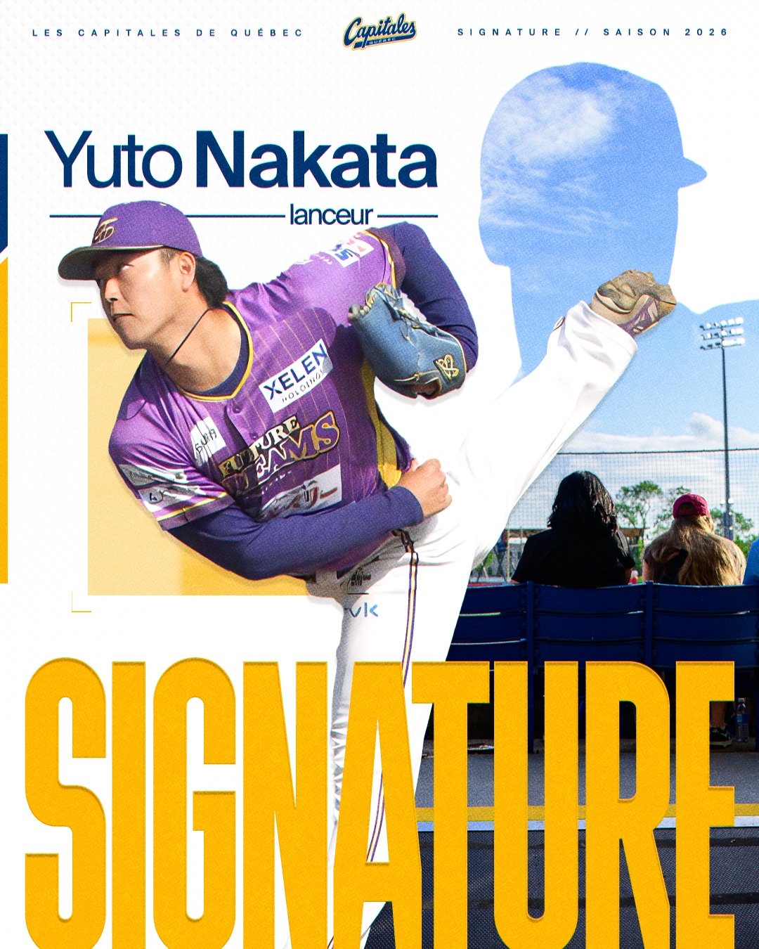 Les Capitales de Québec annoncent la signature du lanceur droitier japonais Yuto Nakata en vue de la saison 2026. Âgé de 25 ans et mesurant plus de six pieds, il vient compléter le contingent de lanceurs avec un profil de releveur polyvalent, utilisable à différents moments d’un match.
